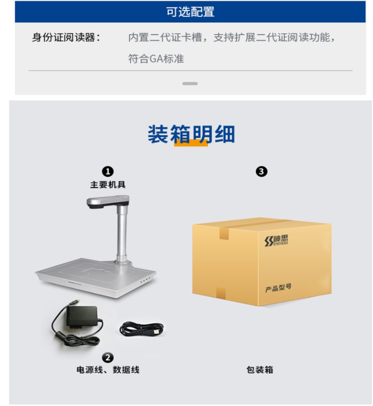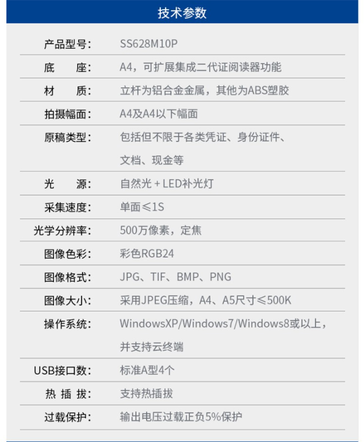 (*由于產(chǎn)品升級或其他原因,神思SS628-M10P光陣高拍儀產(chǎn)品實際參數(shù)有可能變更,以實際產(chǎn)品為準。本文中的所有陳述、信息和建議也不構成任何明示或暗示的擔保)