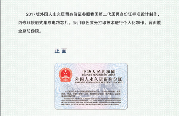 5月27日,公安部公告將于2017年6月16日起簽發(fā)2017版外國(guó)人永久居留身份證。同時(shí)停止簽發(fā)現(xiàn)行外國(guó)人永久居留證。永久居留身份證是外國(guó)人在我國(guó)境內(nèi)證明自己身份的合法證件,是永久居留外國(guó)人享受在華資格待遇的有效憑證,可以使用第二代居民身份證閱讀機(jī)具讀取。屆時(shí),永久居留身份證的實(shí)用效能將大幅提升,新增的機(jī)讀核驗(yàn)功能也將進(jìn)一步便利持證人在華工作和生活,為永久居留外國(guó)人提供良好的社會(huì)服務(wù),切實(shí)增強(qiáng)永久居留外國(guó)人的獲得感。